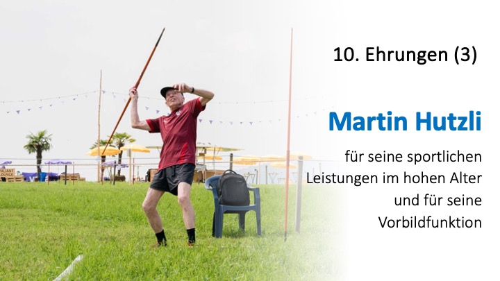 Zudem wird David Scholl für seine langjährige musikalische Begleitung der Generalversammlungen, Martin Hutzli für seine sportlichen Leistungen im hohen Alter und Alfred Rentsch als Gründungsmitglied der Alten Garde geehrt.